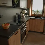 Villan har även ett kök med te-/kaffebryggare. Det finns också mikrovågsugn, vattenkokare och kylskåp i köket.